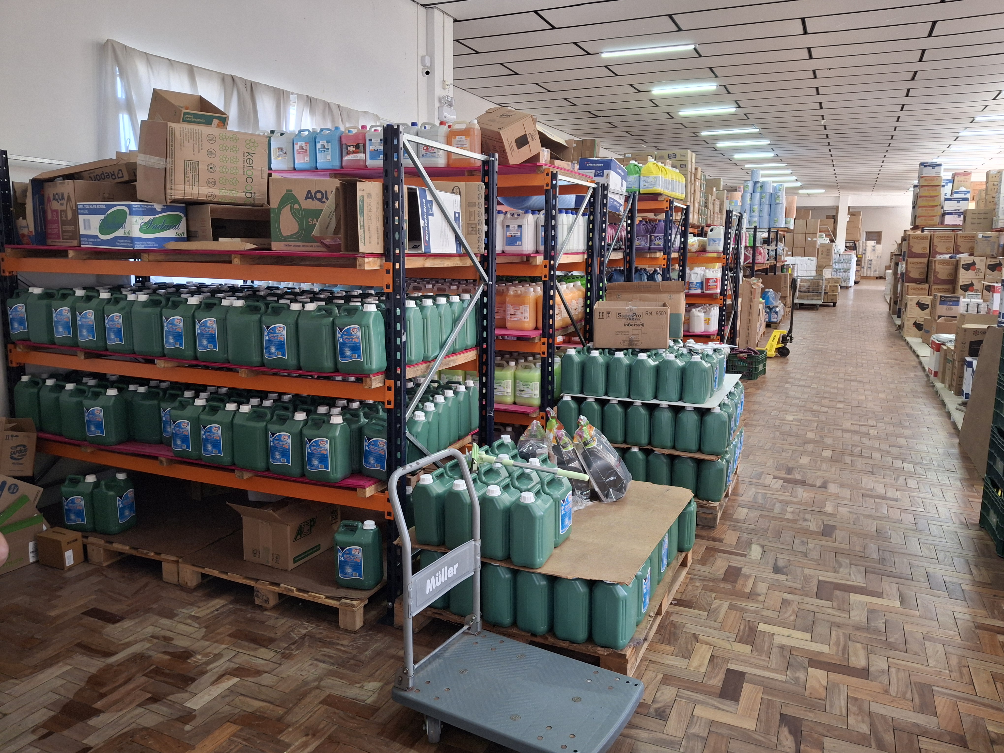 Distribuidora completa de embalagens descartáveis, produtos de higiene e limpeza, materiais de escritório e insumos diversos à venda.