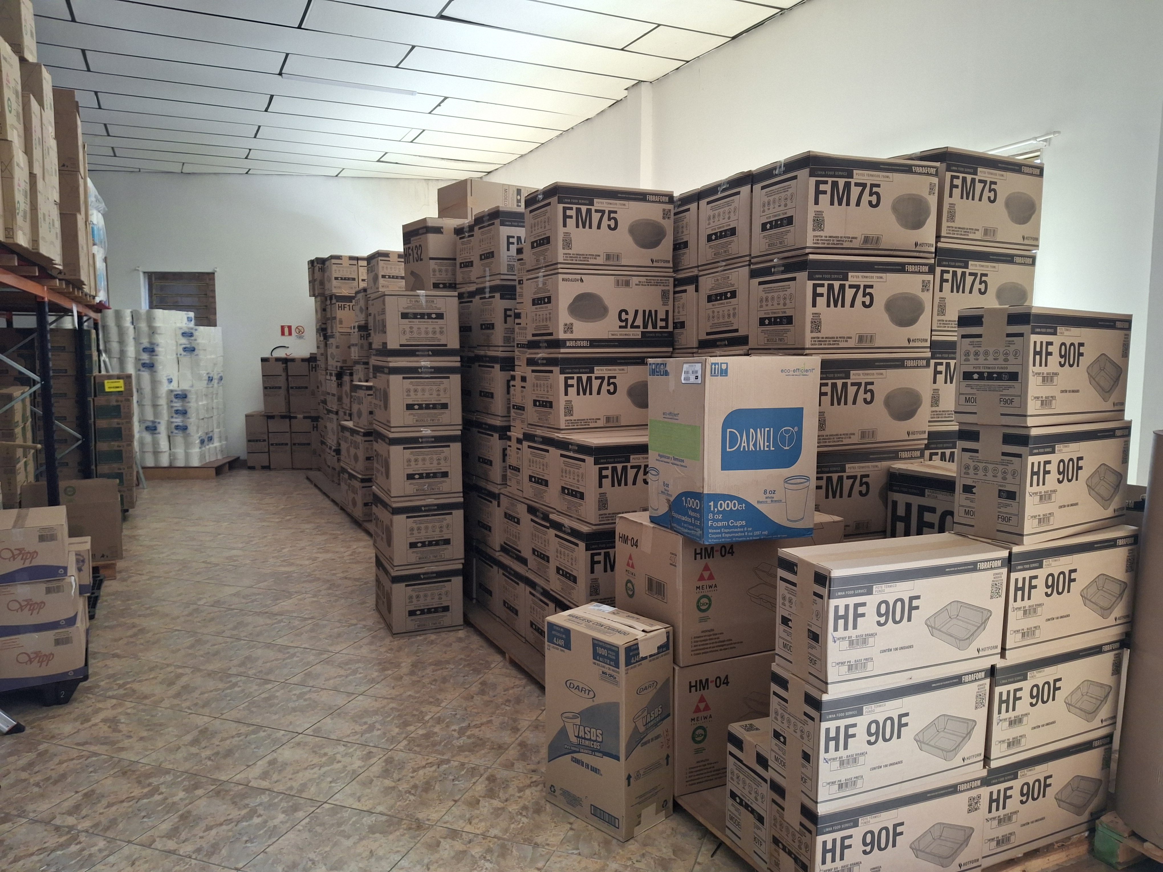 Distribuidora completa de embalagens descartáveis, produtos de higiene e limpeza, materiais de escritório e insumos diversos à venda.